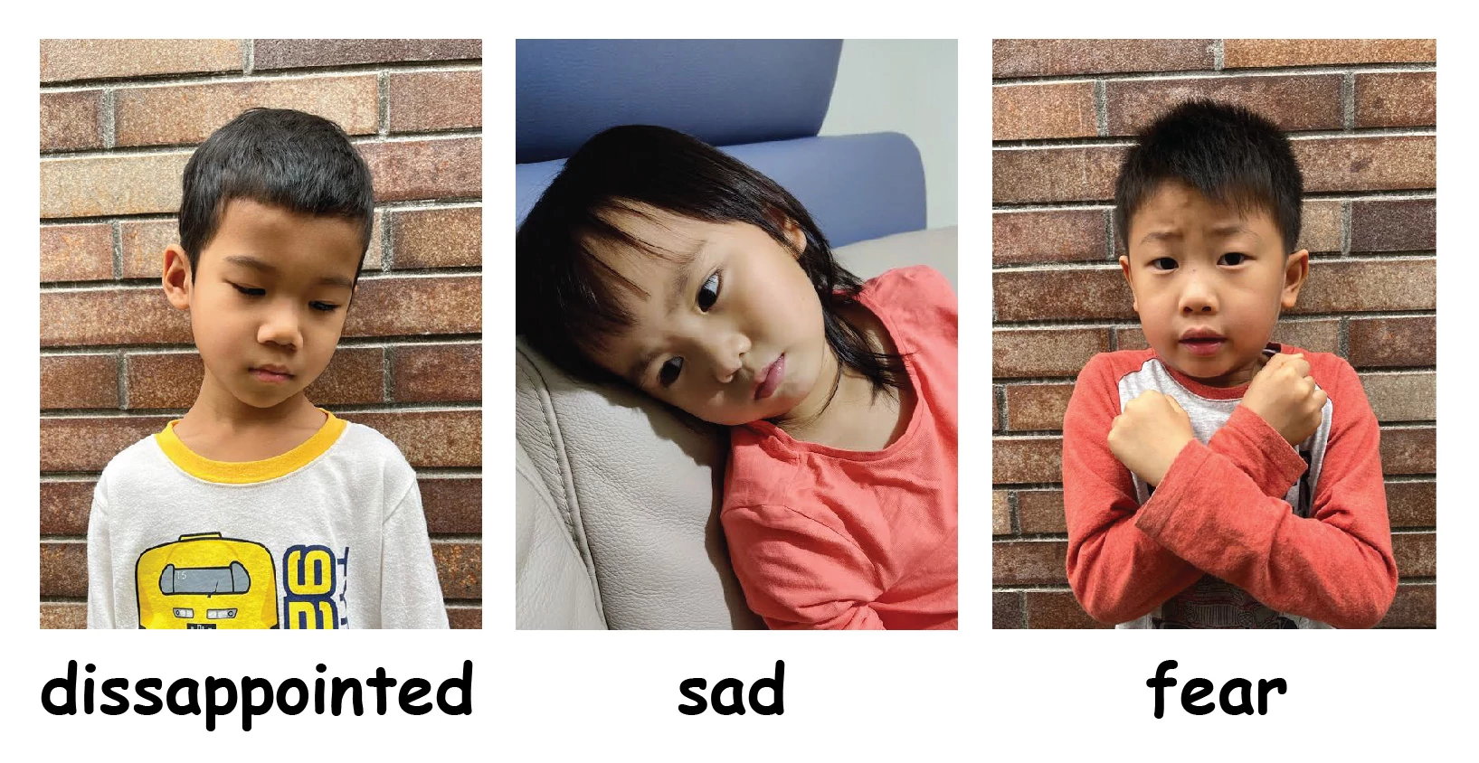 - Memory game: If the child can recall and act out the feelings they experienced before, they can make corresponding expressions or body language. Invite your child to take photos, print them out and write the feelings on the picture.