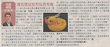 【慎防嬰幼兒的玩具有毒】am730 邱振明 有玩具的塑化劑含量竟然超標240倍!毒害兒童肝臟、腎臟、生殖系統和發育生長!海關測試發現一款市售塑膠黃鴨套裝玩具,含有的第一類及第二類塑化劑「鄰苯二甲酸酯」,分別為塑化物料總重量的24%及4.1%,超出法例所規定的0.1%上限,即是分別超標239倍及40倍! 黑心商人為求利益,如此毒害孩子必遭天遣,但今時今日弄虛作假比比皆是,網購全球的貨品又那麼盛行,相信當局怎樣抽查也只能找出冰山一角。