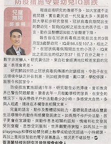 【防疫措施令嬰幼兒IQ暴跌】am730 邱振明 報導這項研究的傳媒不多,如大家還不正視問題,實在虧欠這一代兒童太多。
