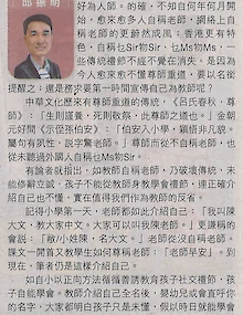 【自稱阿sir與尊稱老師】am730 邱振明 周二為世界教師日,閱讀黃建平老師的《老師》,文中指出不宜自稱老師,種種銜頭亦然,人之患,在於好為人師。
