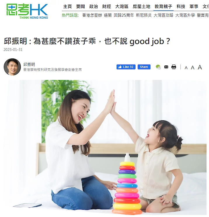 【為甚麼不讚孩子乖,也不說 good job?】思考香港 邱振明