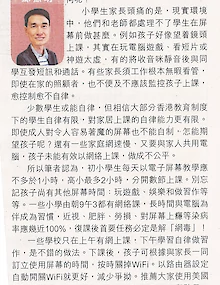 【小心兒童上網成癮!】am730 邱振明 一些機構和KOL吹捧現在是推動網上教學的好時機,筆者則一向建議不對0-6歲幼兒作網上教學 https://www.facebook.com/hkicw/posts/10157974573862629 小學生又如何呢? 小學生家長頭痛的是,現實環境中,他們和老師都處理不了學生在屏幕前做甚麼。