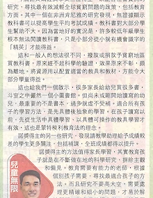 諾獎得主的教養啟示 今屆諾貝爾經濟學獎三位得主,以配合社會實況的研究,尋找最有效減輕全球貧窮問題的政策,包括教育方面。
