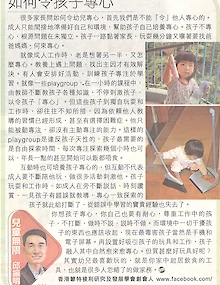 【如何令孩子專心】am730 邱振明 很多家長問如何令幼兒專心,首先我們是不能「令」他人專心的。