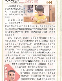 【BB要識主動安全】am730 邱振明 上回建議給孩子多玩真實的玩具和工具,有讀者問危險嗎?幼兒真的可入廚房嗎? 安全第一是對的,但甚麼是安全?譬如我們的孩子3歲已用生果刀切蔬果,危險嗎?每當我在本地和國際幼兒教育會議播放幼兒切檸檬的片段,讚嘆之餘也會有人問安全嗎?是的,這是經過專人引導,觀眾不應隨便模仿。