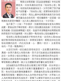 【《反起跑線聯盟》如何抵抗怪獸家長?】am730 邱振明 電視劇《反起跑線聯盟》中的幼稚園校長,向家長講及幼兒在「吸收性心智」階段,有超強的無意識吸收力,父母忽略了孩子會有不良影響。